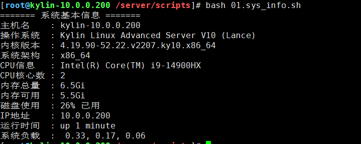 echo “IP地址 : $(hostname -I 2>/dev/null | awk ‘{print $1}’ || ip addr show 2>/dev/null | grep “inet ” | grep -v 127.0.0.1 | head -1 | awk ‘{print $2}’ | cut -d/ -f1)”